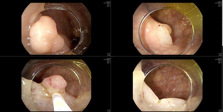 대장내시경상 10 mm 크기의 진행성 선종있어 용종절제술로 제거