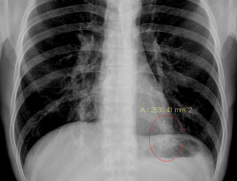 청진음은 폐첨부에 rhonchi 양상이긴 하였으나 x-ray상 Lt. posterior basal segment에 air bronchogram이 관찰됨; 가래 배양 검사등 시행 후 항생제 투여하고 외래 추적 예정