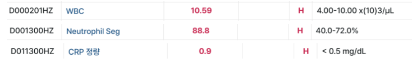 중성구 증가, crp는 약 2배