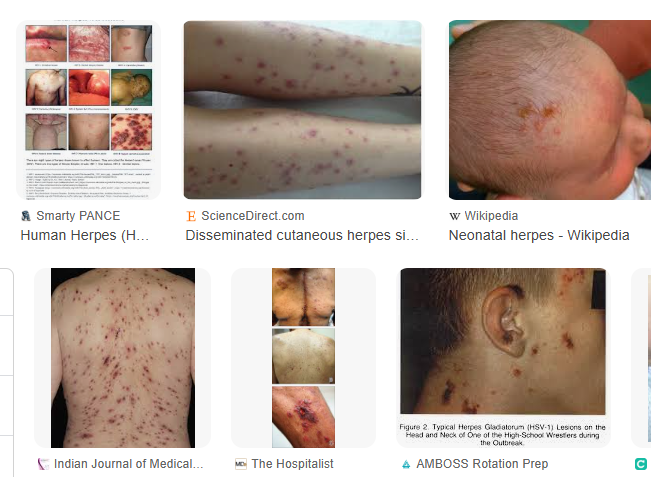 1. generalized herpes, 전신성 헤르페스에 대한 경험이 없으며, 필요시 기저질환 유무도 확인해야 하고