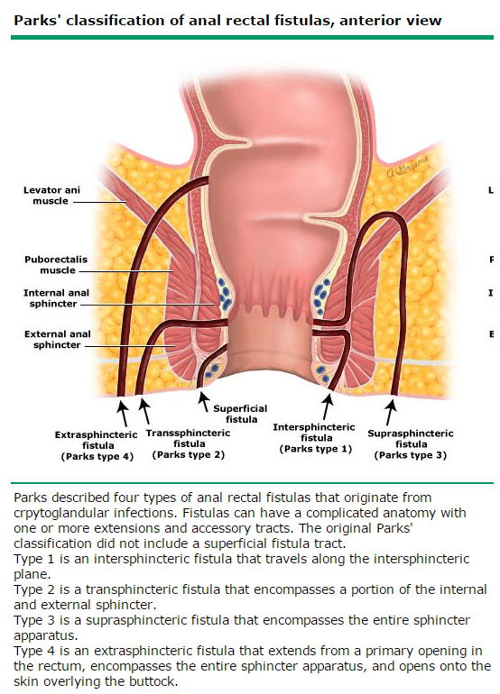 내시경상 발견된 직장 누공, 항문쪽 출구는??