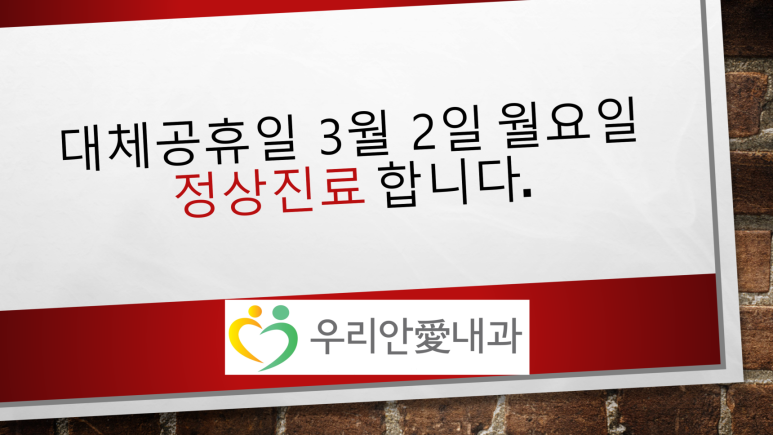 대체공휴일 진료안내; 2026년 03월02일 월요일 정상진료 합니다 - 동대문구 답십리, 전농동, 우리안애 우리안愛 내과