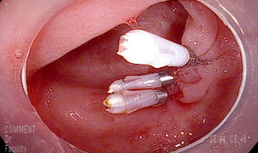 클립 하나로 기계적 결찰 후 상행결장까지 진입하여 관찰 후 후퇴시 재출혈 있어 클립 2개 추가 시행 후 지혈됨을 확인함.