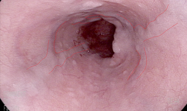 출혈의 흔적이 있으나 위와 십이지장에 혈액은 관찰되지 않음