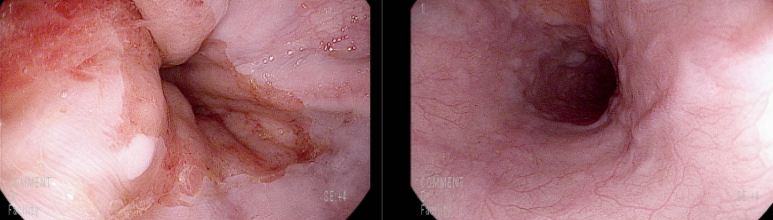 뚜렷히 열상을 입은 점막은 관찰하지 못하였고 출혈 지속되지 않음을 확인 후 검사 종료함